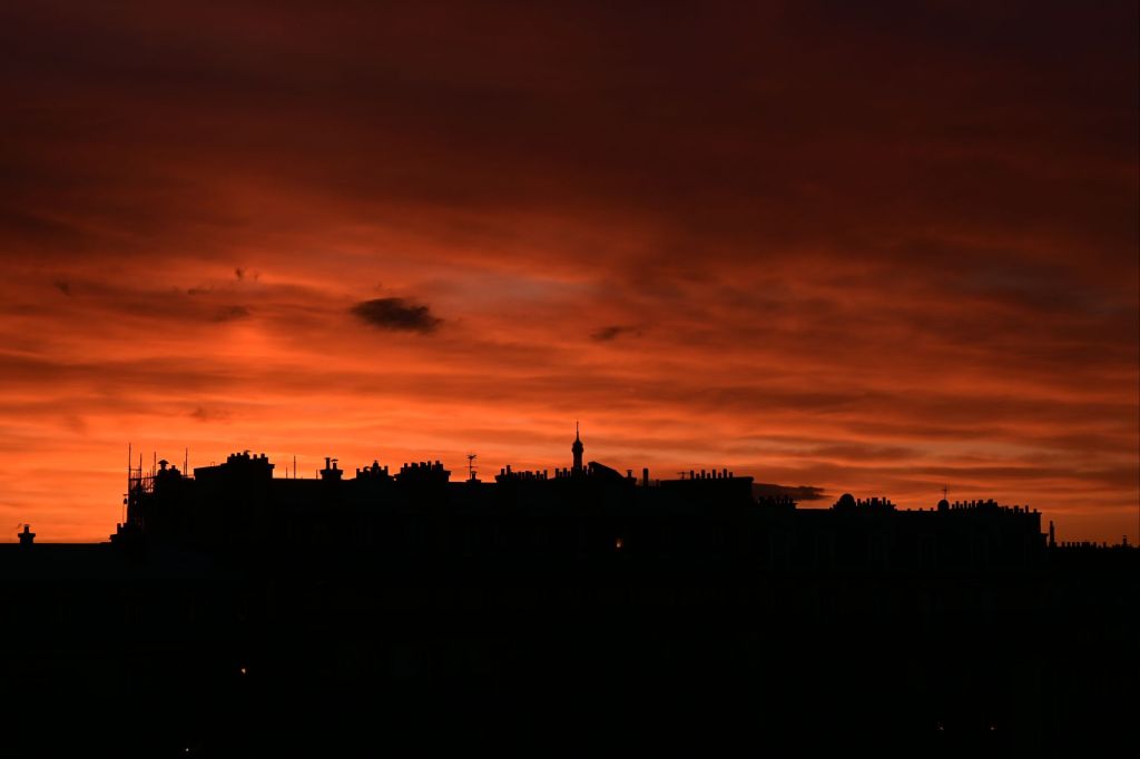 No veo más que ese cielo rojo sangre, ese cielo que todo lo ha visto y todo lo sabe, y que trata de advertirnos, de revelar los crímenes de París, que nos pide que huyamos, porque esta ciudad, que parece tan sólida, es como un diente de león, de una belleza extraordinaria que desaparece con un soplo.